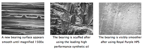 Royal Purple HPS Series motor oil is specifically formulated to maximize performance and meet the demands of high performance and modified engines. HPS is high performance street motor oil recommended for vehicles no longer under manufacturer warranty and for those seeking a higher level of performance and protection. Royal Purple’s HPS is fortified with a high level of zinc/phosphorus anti-wear additive and Royal Purple’s proprietary Synerlec® additive technology. This unique blend enables HPS to outperform leading high performance synthetic oils and conventional lubricants for both gasoline and diesel engines. Available viscosities include: 5W-20, 5W-30, 10W-30, 10W-40 and 20W-50. Royal Purple HPS Series of motor oil responds to increased pressure with increased viscosity. Improved sealing between the piston ring and cylinder wall maximizes horsepower and torque. Its advanced additive technologies improve the condition of metal-to-metal contact under severe load. The advantages are clear. Take a look at the following photos: