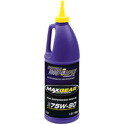 Max Gear is recommended for use in truck and automotive front or rear differentials, manual transmissions and lower gear units of marine engines that specify use of an API GL-5 or GL-4 fluid. It is non-corrosive to soft yellow metals (brass, bronze, copper, etc.) and synchronizer safe. Specially designed to extend gear and bearing life, Max Gear provides superior corrosion protection over competing conventional and synthetic gear oils. We engineered this ultra-tough, high performance automotive hypoid gear oil to provide maximum protection to heavily loaded gears while maximizing power throughout the drive train. Max Gear outperforms ordinary gear oils by combining the highest quality synthetic oils with Royal Purple’s proprietary Synerlec® additive technology. Max Gear makes gears run smoother, quieter, cooler and longer without overhauls. A direct reduction of drag in the drive train has huge advantage for trucks and other 4-wheel drive vehicles: better gas mileage. Max Gear is formulated with a friction modifier additive – no additional additives are necessary. Max Gear is available in the following viscosities: 75W-90, 75W-140, 80W-90, 85W-140 and SAE 90]. |