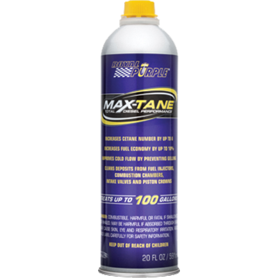 Diesel engines are valued for fuel efficiency and longevity. Extend the miles you can drive and years of service on your diesel engine with Royal Purple’s new Max-Tane fuel injector cleaner and stabilizer. Max-Tane is for year-round use in all types of light, medium and heavy duty diesel engines, and is compatible with any type or grade of diesel fuel, including #1 diesel and #2 diesel, biodiesel and ultra-low-sulfur diesel (ULSD). Specifically formulated to solve problems that come with today’s new HPCR (High Pressure Common Rail) diesel injection systems, this premium fuel system cleaner prevents gelling, improves fuel economy, lubricates and cleans the fuel system. Max-Tane is safe to use with all types of diesel exhaust emission systems equipment, including diesel particulate filters (DPFs) and catalytic converters. However, do not pour Max-Tane directly into Diesel Exhaust Fluid.