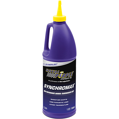 Synchromax is a synthetic manual transmission fluid designed to increase performance and expand the life of your manual transmission. Using Synchromax improves shifting, reduces gear noise and increases power transfer to the wheels. As a performance transmission fluid, it also lowers operating temperatures and provides outstanding wear protection. Synchromax is recommended for manual transmissions that specify an automatic transmission fluid. It’s also ideal for 4×4 transfer cases and motorcycle gear boxes. Fully compatible with all types of friction materials, Synchromax provides excellent corrosion and oxidation protection without affecting the soft metals commonly found in manual transmission synchronizers. Formulated with Royal Purple’s proprietary Synerlec® technology, Synchromax is the top synthetic transmission fluid for protection and an all-around smoother ride. Replacing or rebuilding your transmission can cost thousands. Avoid costly transmission repairs by replacing old fluid with Synchromax. Are you ready to outperform? |
