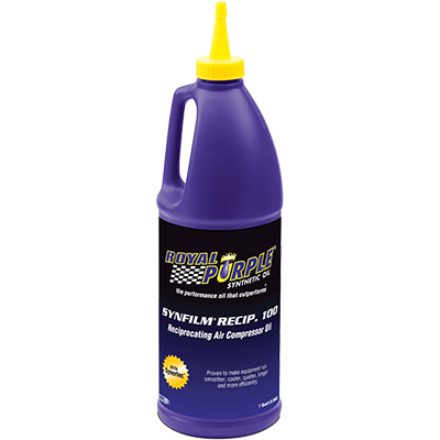 Synfilm Recip. 100 is recommended for lubricating reciprocating air compressors (piston type). Synfilm Recip. 100 is a long life, high film strength, energy efficient, synthetic lubricant that significantly increases the reliability and efficiency of reciprocating air compressors and reciprocating shop compressors. It excels at reducing wear and keeping discharge valves free of harmful carbon deposits. Synfilm Recip. 100 forms a better seal and reduces friction between the cylinder wall and piston rings for greater compressor efficiency. It is formulated with Royal Purple’s proprietary Synerlec additive technology, which is proven to make equipment run smoother, cooler, quieter, longer and more efficiently. |